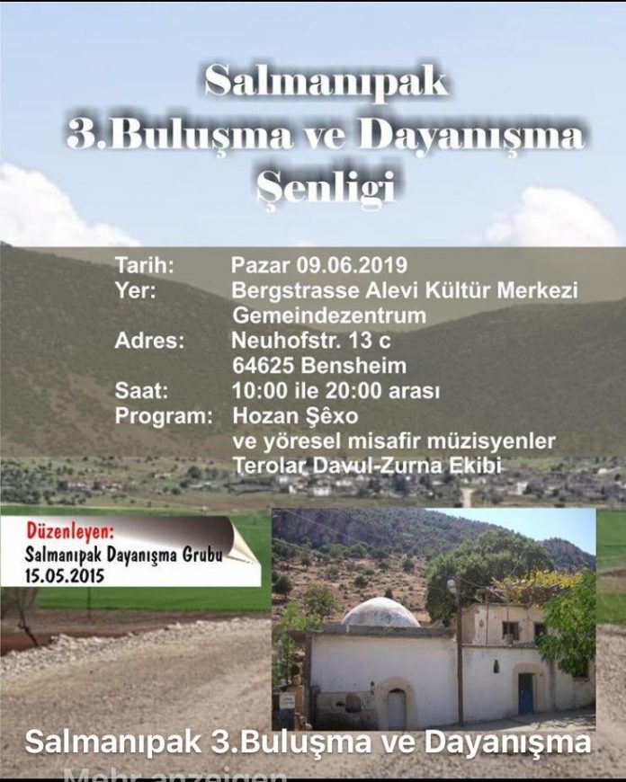 09.06.2019 Tarihinde Bergstrasse Alevi Kültür Merkezi Gemeindezentrum, Neuhofstr. 13c, 64625 Bensheim adresinde gerçekleşecek şenlikte Hozan Şexo, Terolar Davul Zurna Ekibinin yanı sıra Yöresel müzisyenler ve misafirler de Programda yer alacaklar.